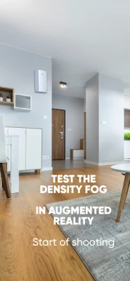 How the AR experience works * I frame the floor and once identified I can draw the perimeter walls and the height of the walls by tracing them with a line. * Defined perimeter and height, I see the volume of the space * The system suggests the most appropriate fog generator system; once I have chosen the product I can insert it in Augmented Reality on the wall / ceiling * The emulation of the fog generator begins, which will faithfully return time and percentage of saturation of the environment.