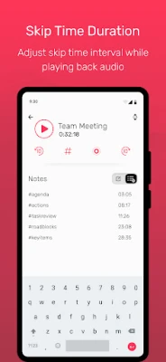 Adjust skip time interval while playing back audio, making it easy to skim through the recording at your desired pace.
