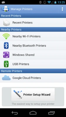 - Wi-Fi (using a Wi-Fi Direct printer or using a Wi-Fi router as a middle man);