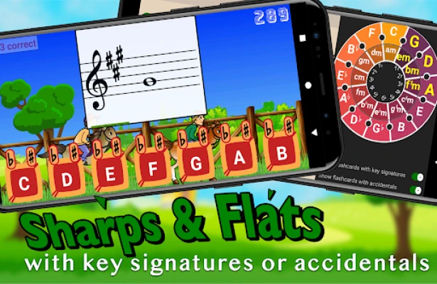 Players can respond to flashcards by simply playing the note on their acoustic or MIDI instrument. They can also choose to answer by tapping letter buttons or playing a key on an on-screen piano.
