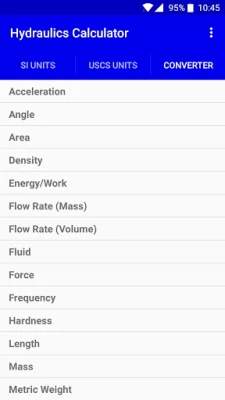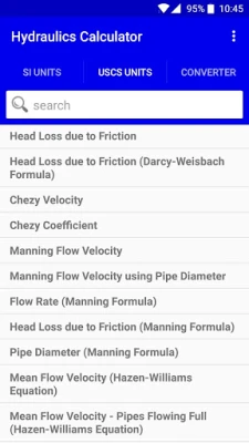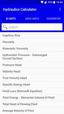 Hydraulics Calculator contains 126 Calculators and Converters, that can quickly and easily calculate and convert different Hydraulics, Water works and Civil Engineering parameters.